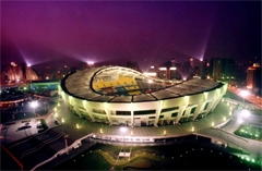 上海八萬人體育館,膜結(jié)構(gòu)。建筑面積28000萬平方米的屋蓋為雙曲線馬鞍狀,鋼結(jié)構(gòu)總量為5000余噸,最長懸挑桁架達(dá)73.5米,為當(dāng)時(shí)“世界第一懸挑結(jié)構(gòu)”。采用多機(jī)同步作業(yè),空中吊點(diǎn)置換,單元合同分配,結(jié)構(gòu)同步變形等一系列高施工控制技術(shù)。拉索由上海浦江纜索股份有限公司生產(chǎn)。 返回